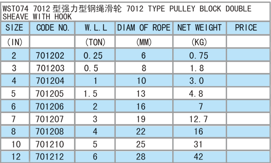 產(chǎn)品描述:該款閉口鋼絲繩滑輪雙輪鉤式是區(qū)別于強(qiáng)力型開(kāi)口或者強(qiáng)力型閉口滑輪的產(chǎn)品,該款滑車(chē)結(jié)構(gòu)簡(jiǎn)單,輪子里面不帶銅套或者軸承,屬于鋼絲繩滑車(chē)?yán)锩娴牡蜋n產(chǎn)品,主要出口到臺(tái)灣,南美洲,東南亞等地區(qū)。產(chǎn)品的尺寸和拉力設(shè)計(jì)同開(kāi)口滑輪的尺寸和拉力是一致的,從2寸到12寸,拉力從0.25T 到6T,能滿(mǎn)足大部分的需求。