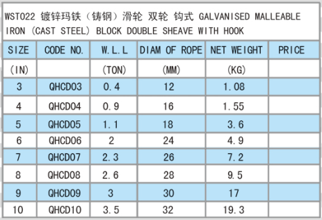 成華牌熱鍍鋅瑪鐵(鑄鋼)船用滑輪,雙輪鉤式