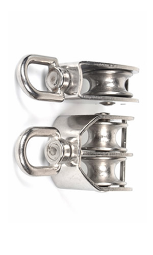 成華牌304不銹鋼單滑輪是一種特殊場合專用起重吊裝工具,它結構簡單使用方便,能夠多次改變滑輪與滑輪組牽引鋼索的方向和起吊或移動運轉物體,特別是由滑輪組聯(lián)合組成的葫蘆組,配合卷揚機,桅桿或其他起重機械,廣泛應用在海運安裝作業(yè)中。